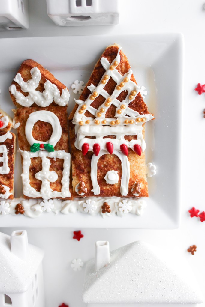 I was able to get some time to myself yesterday and focus on this gingerbread french toast recipe while my mom came over to help with the kids. Thank goodness!! I’m so grateful because there is absolutely no way I would have been able to do it with all three kids needing my attention. I was getting pretty picky with the icing and coordinating the sprinkles.